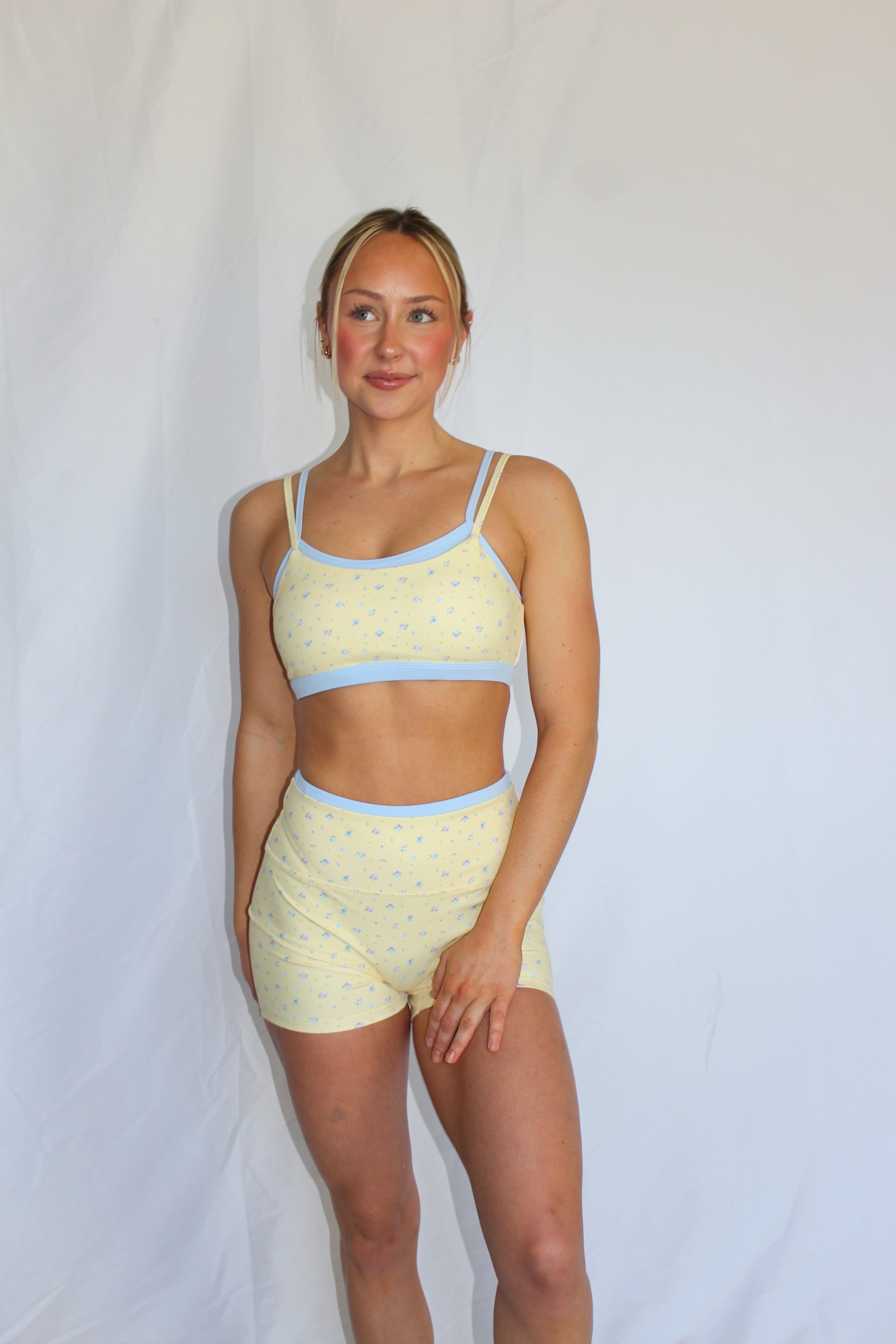 Perfect for Pilates, yoga, lifting, or any active day, these shorts are made to keep up with you while still looking effortlessly cute. Pair them with the Lemon Bloom Sports Bra for a coordinated set that’s equal parts bold, flattering, and functional. 🍋💛💜