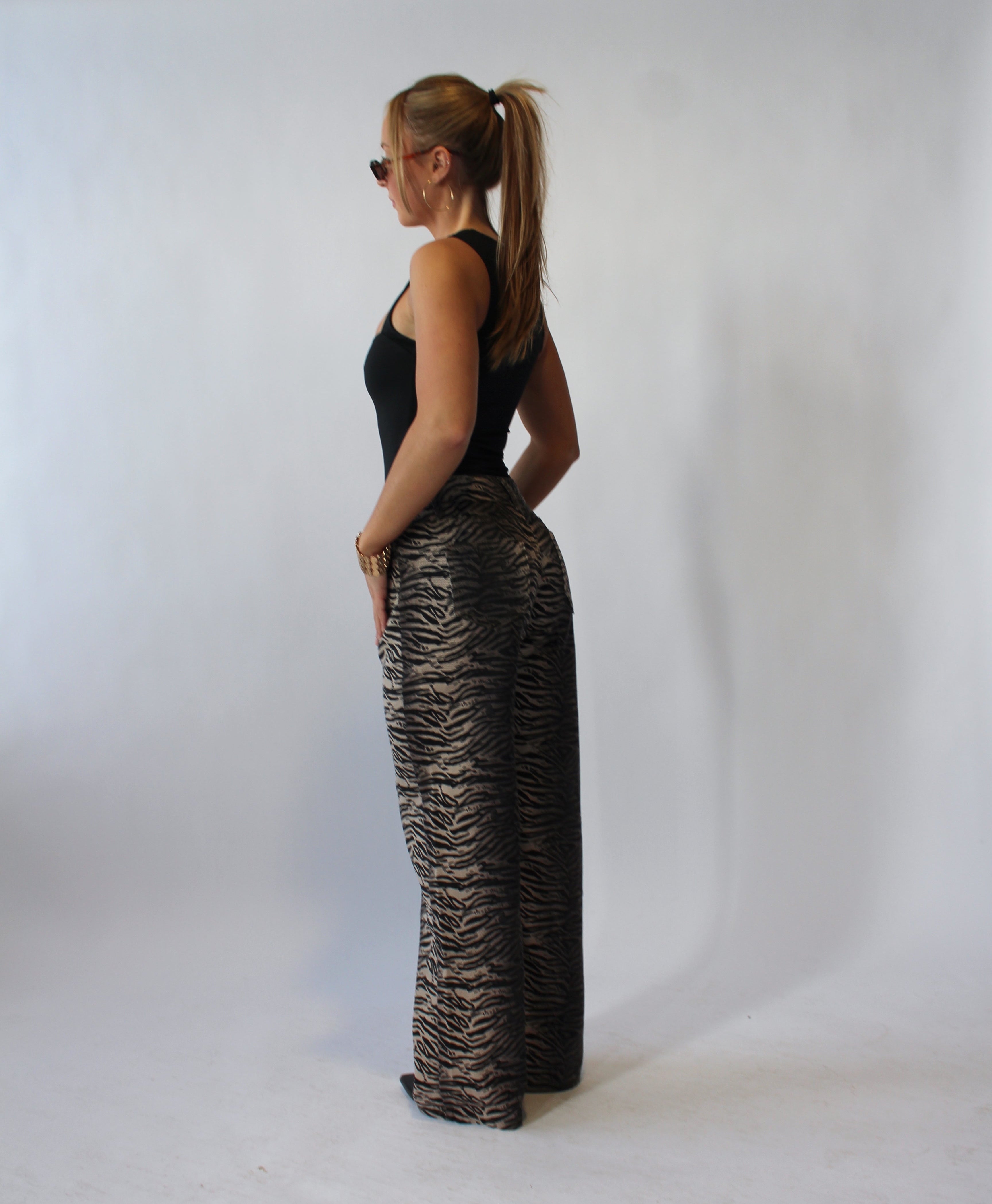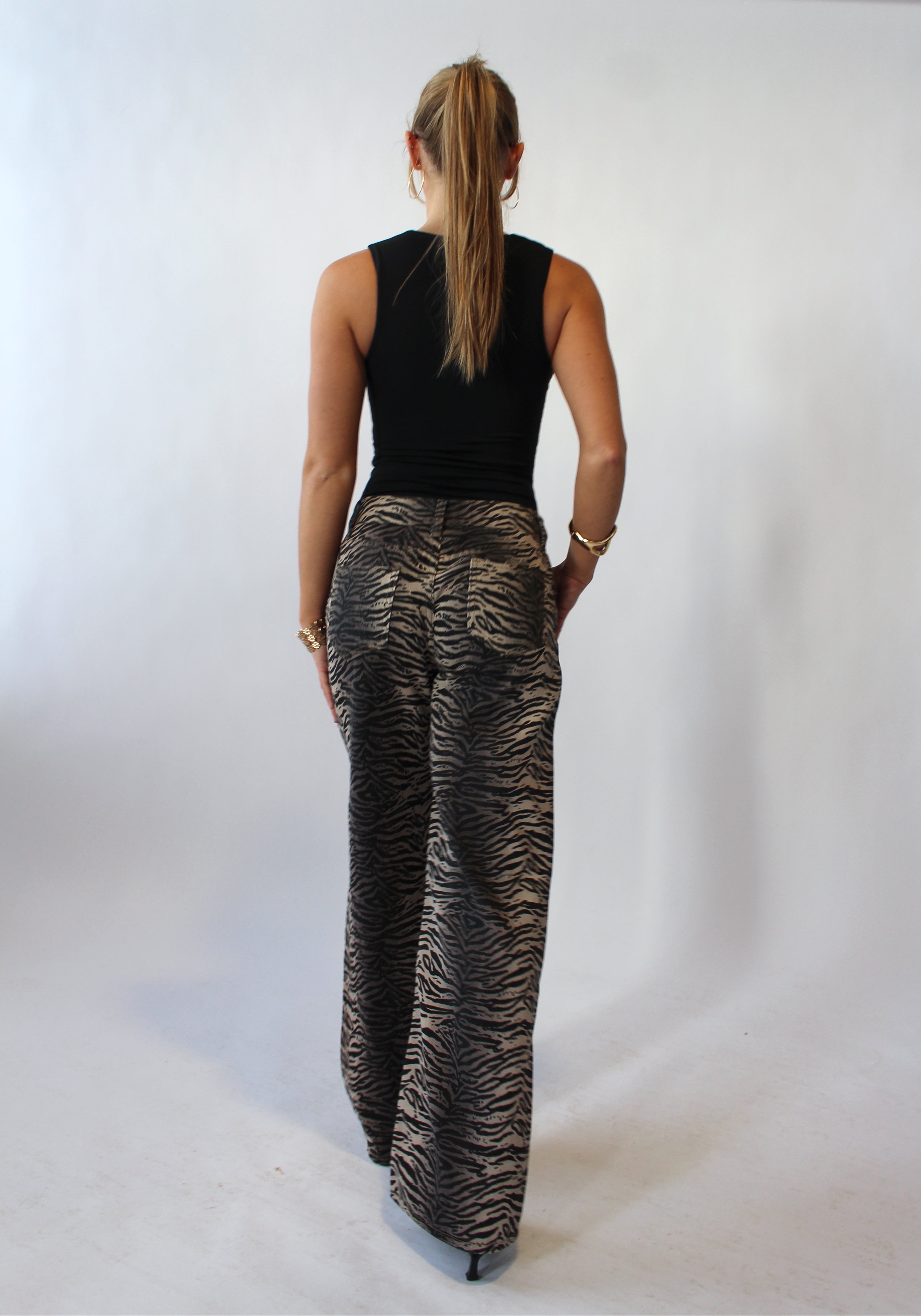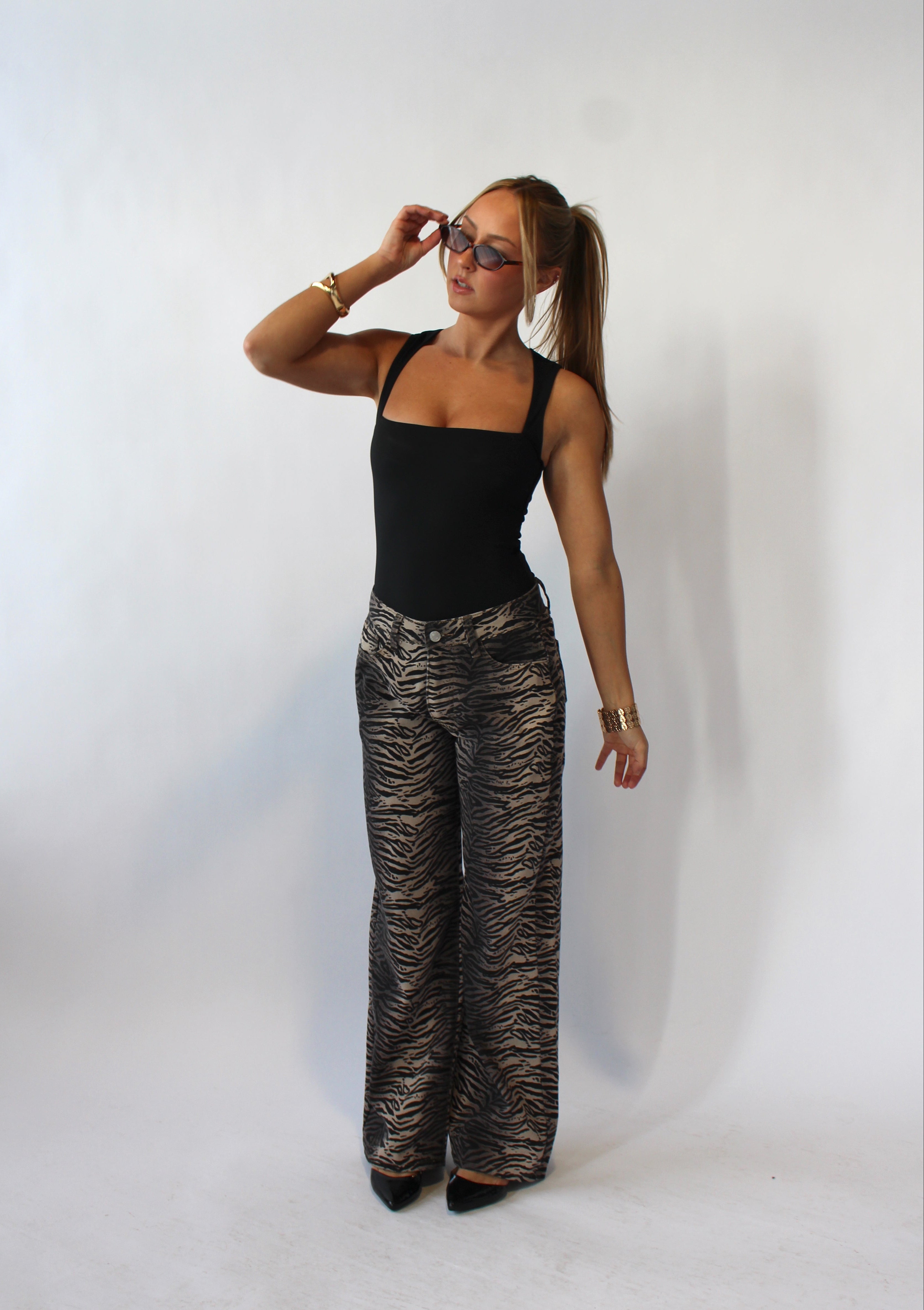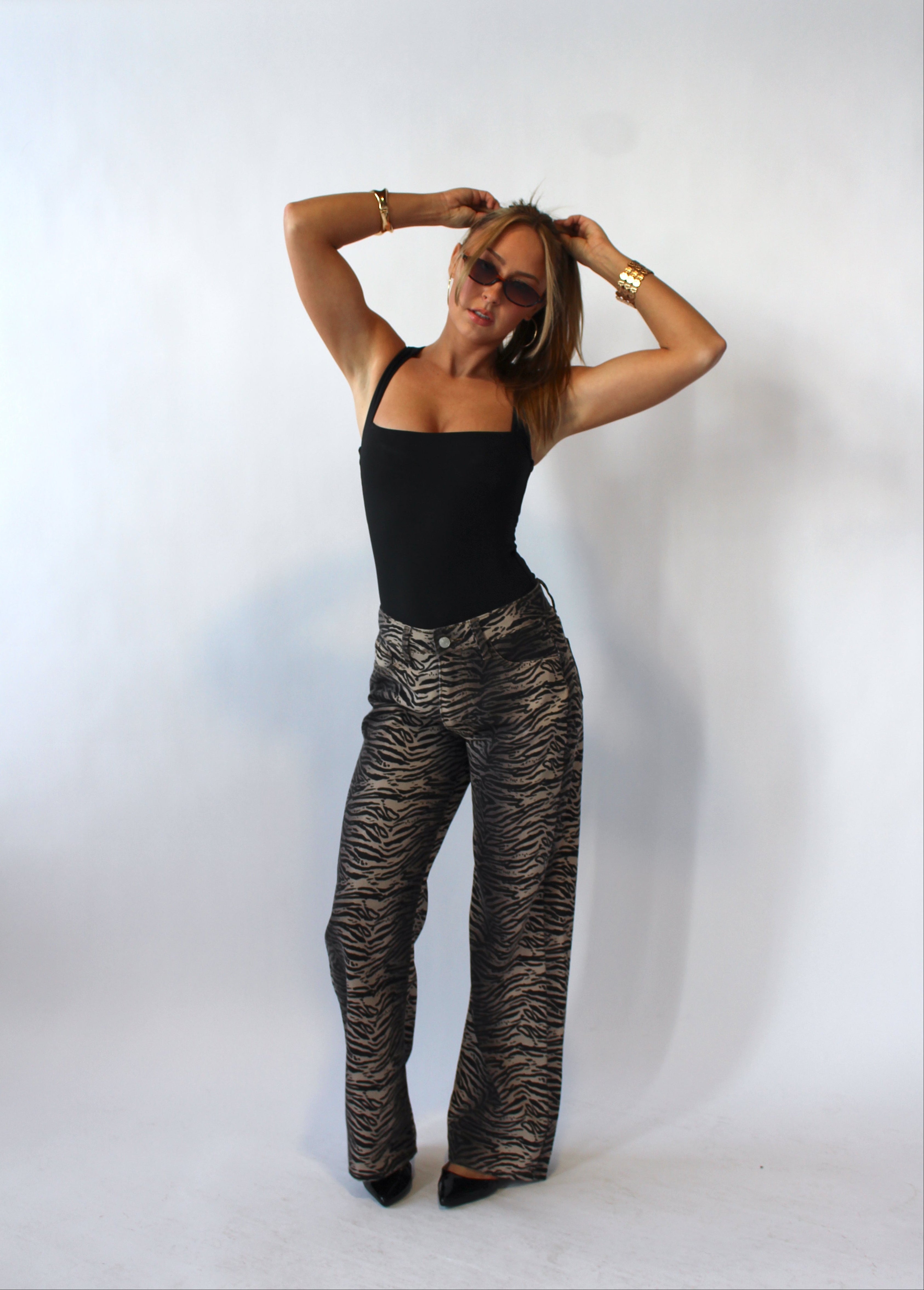 Turn heads in our Zebra pants, crafted from lightweight material for all-day comfort. Featuring a mid-rise fit and straight-leg silhouette, these jeans offer a flattering, relaxed look while showing off bold zebra stripes. Perfect for styling with sneakers or heels, they’re a statement piece that combines edgy fashion with effortless wearability.