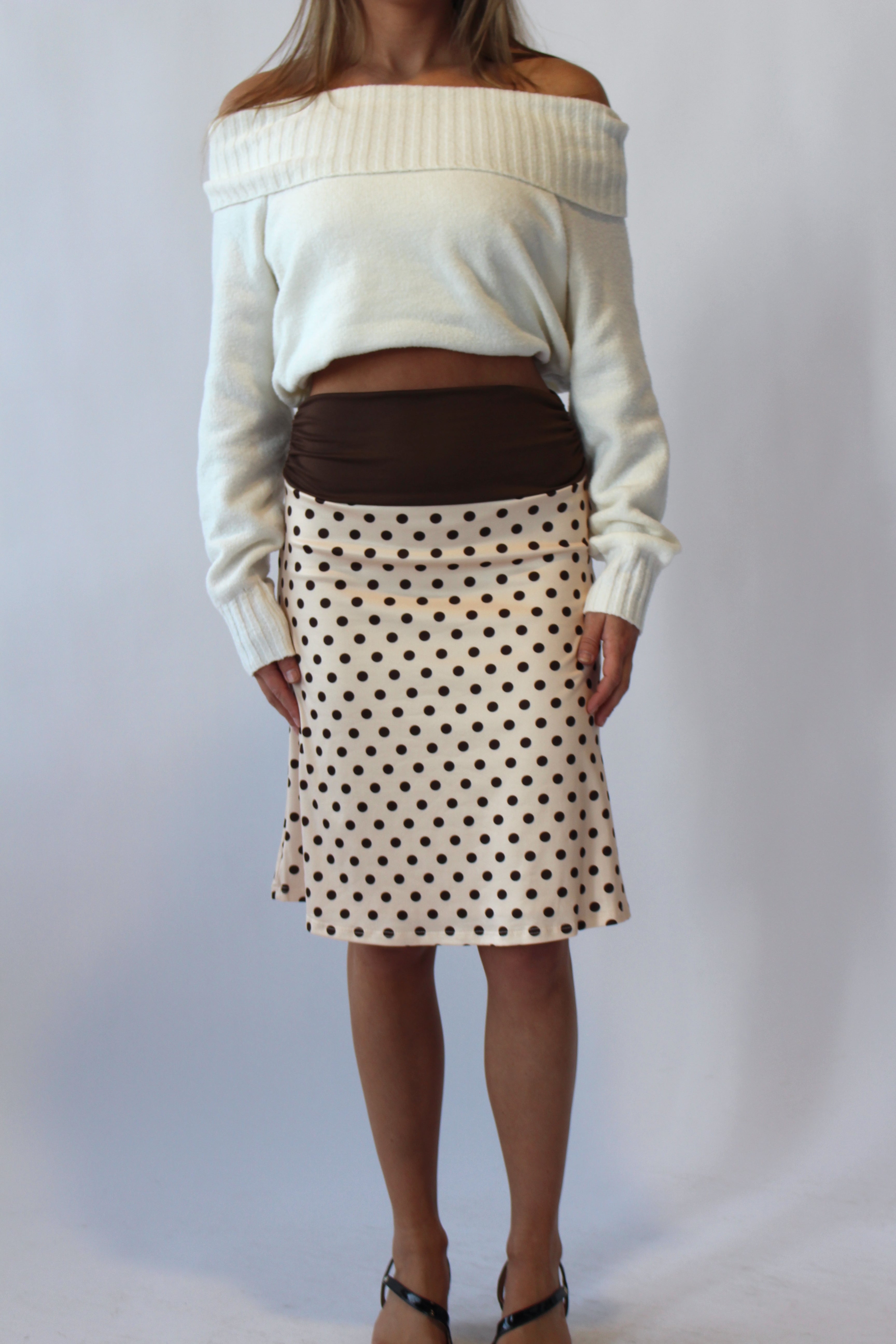 A timeless knee-length polka dot skirt with a soft, stretchy waistband for all-day comfort. Easy to dress up or down, this versatile piece is a go-to for effortless style.